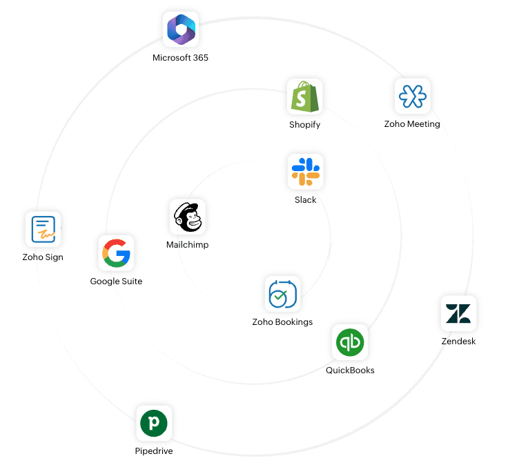 Eliminate the hassle of managing multiple apps, users, user experiences, passwords, and billing cycles. Unify all your customer-facing tools in one place with Zoho CRM Plus. With built-in single sign-on, you get instant access to all your tools and don't have to manage them separately.
